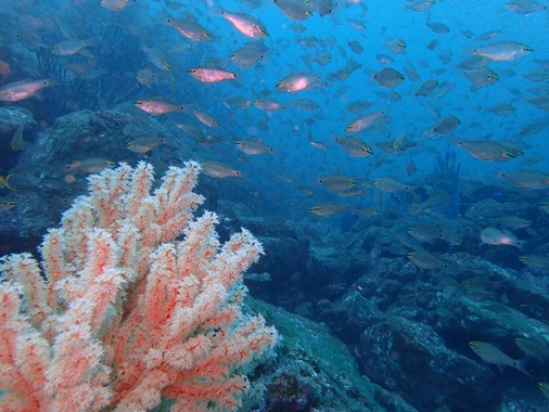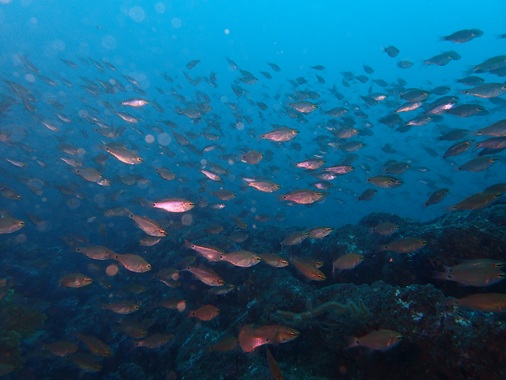 お久し振りのボートダイビングのゲスト様でしたが2本目は落ち着いて潜って頂けた様子! 群れが良い今の!逗子です(^^♪ ネンブツダイ、イサキ、キビナゴ、イワシ、タカベ等