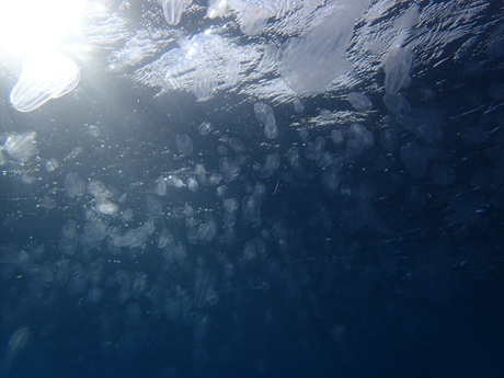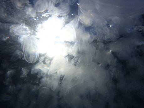 後半もダイバーを見失うほどのクラゲ溜まりに
