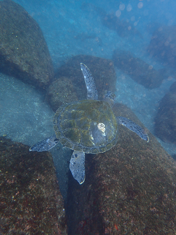 浅瀬でカメにも会えました!