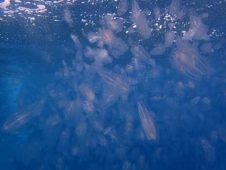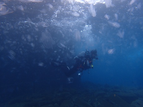 後半もダイバーを見失うほどのクラゲ溜まりに