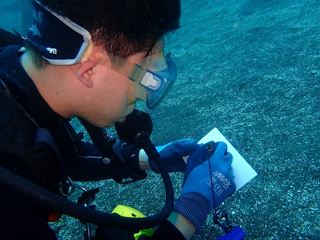 中性浮力を意識して生物観察、課題の達成を目指して43分のファーストダイブ